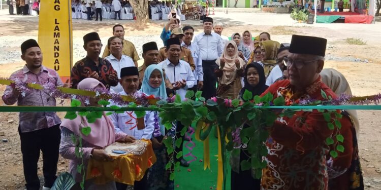 Kepala Kantor Wilayah Kementerian Agama Provinsi Kalimantan Tengah H Noor Fahmi beserta Ketua DWP Hj Sitia Mariani hadir pada acara Tasyakuran Peresmian Penggunaan RKB di MIN 1 Lamandau, Senin (26/08/2024).